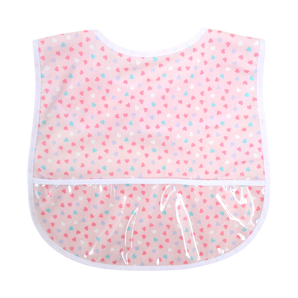100% cotton fabric with soft vinyl laminate, plastic pocket, hook & loop closure