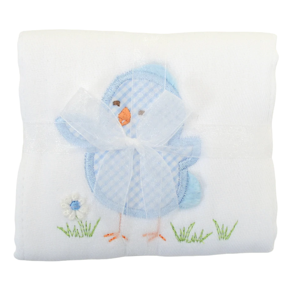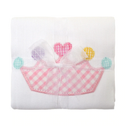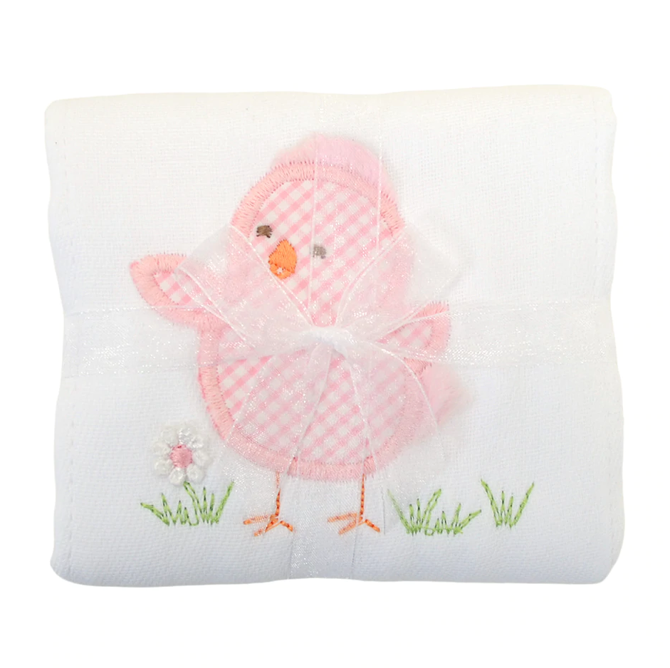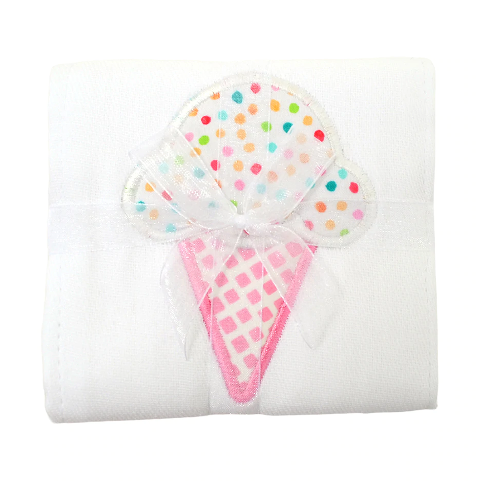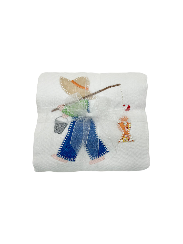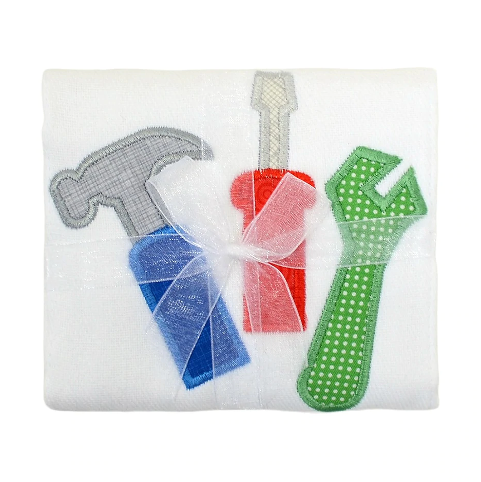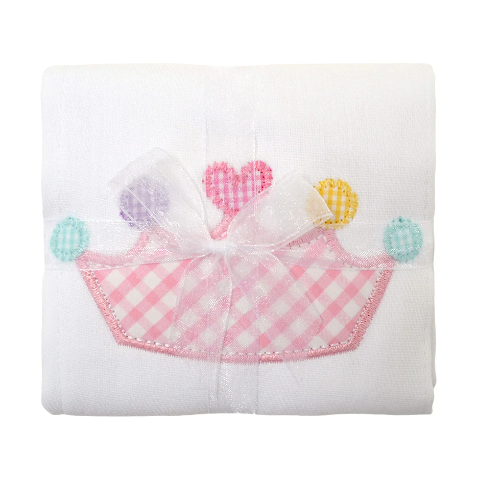 The burp cloths are one of our most practical products! Made from super absorbent, traditional cloth diapers, these burp cloths feature one of our signature appliques and come tied with grosgrain ribbon. The burps are an easy and useful gift to bring to new parents at the hospital, with a meal or on their own!