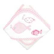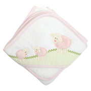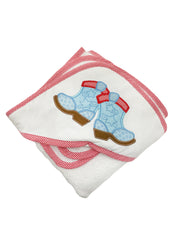 Our hooded towel and washcloth set is made of extra soft, pure cotton terry for newborn’s sensitive skin. The towel is so large that it can last well into the toddler years. The hood is covered with a pique layer, which helps to hold a monogram beautifully and is backed with terry cloth for extra absorbency. The washcloth is trimmed with coordinating fabric, making the perfect bath time set.