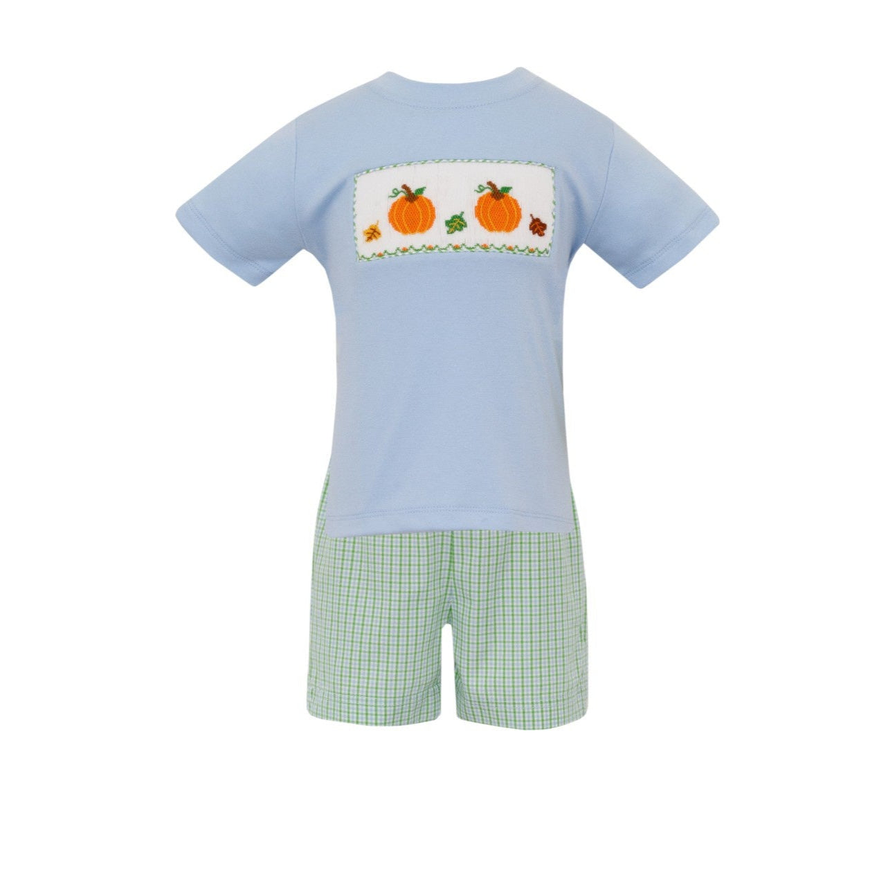 Anavini Pumpkin Boy's Lt Blue Knit T-Shirt & Green & Blue Check Boy's Shorts 502P/502SB -VF25 5208