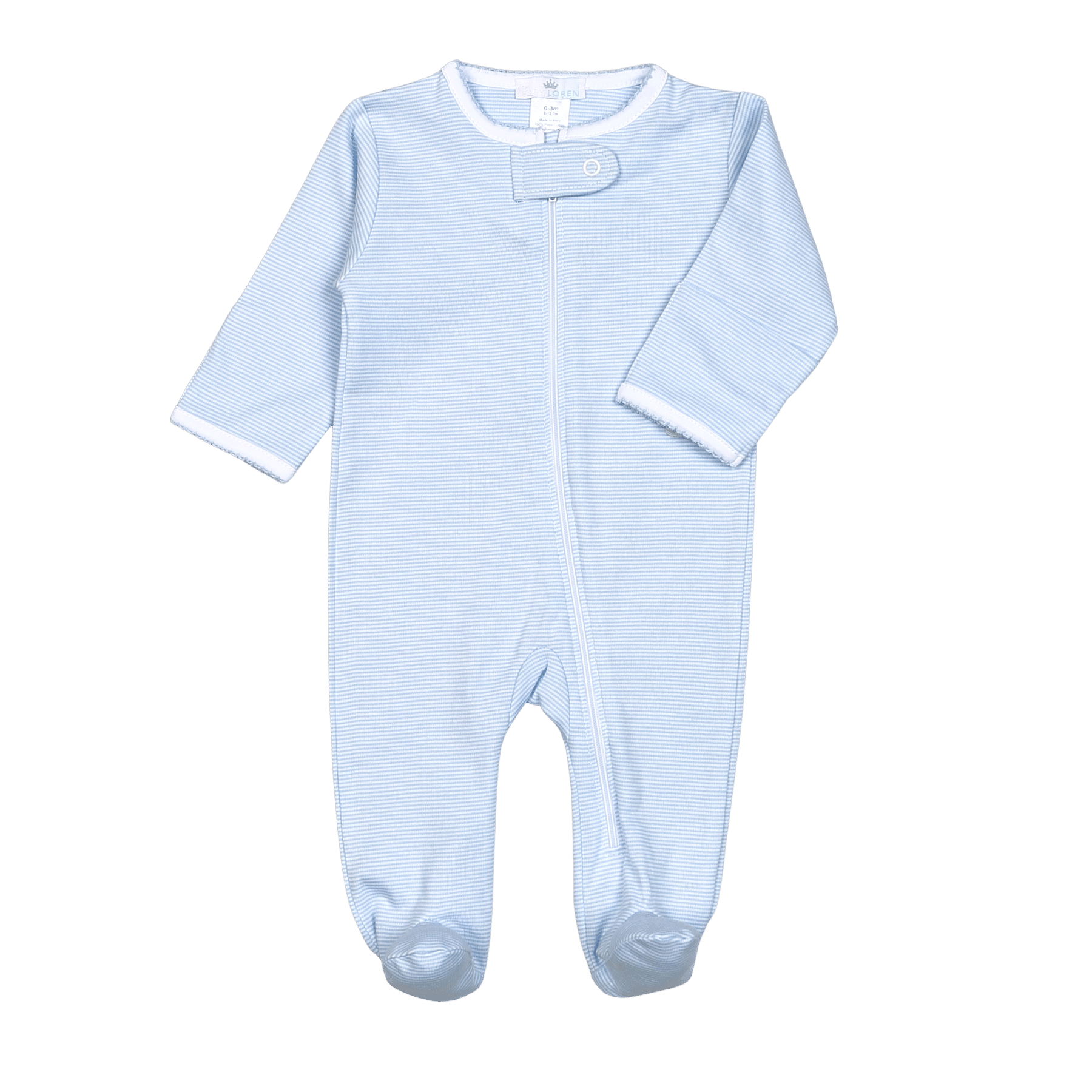 Baby Loren Blue Tiny Stripes Pima Zipper Footie BSZ-314 5101