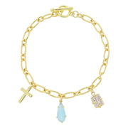 Jane Marie 18K Gold Plated Bracelet w/ Teardrop Crystal & Pendants JM6632B