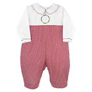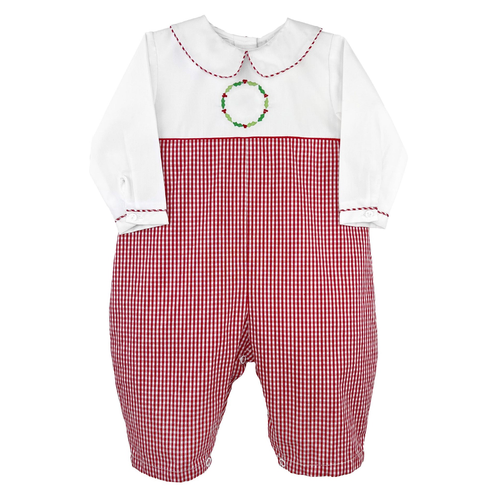 Petit Ami Longall W/Wreath Emb Red Gingham 2858/3858 5107