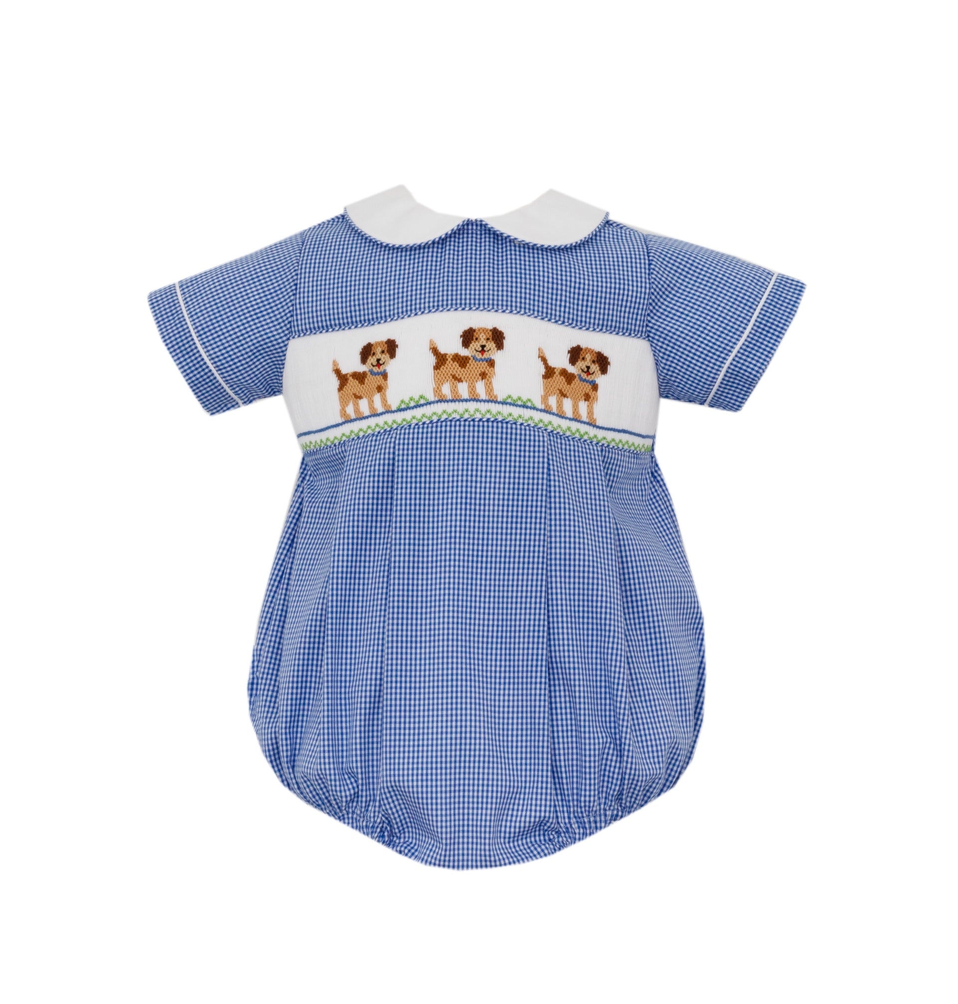 Puppies Royal Blue Gingham Boy's Bubble S/S