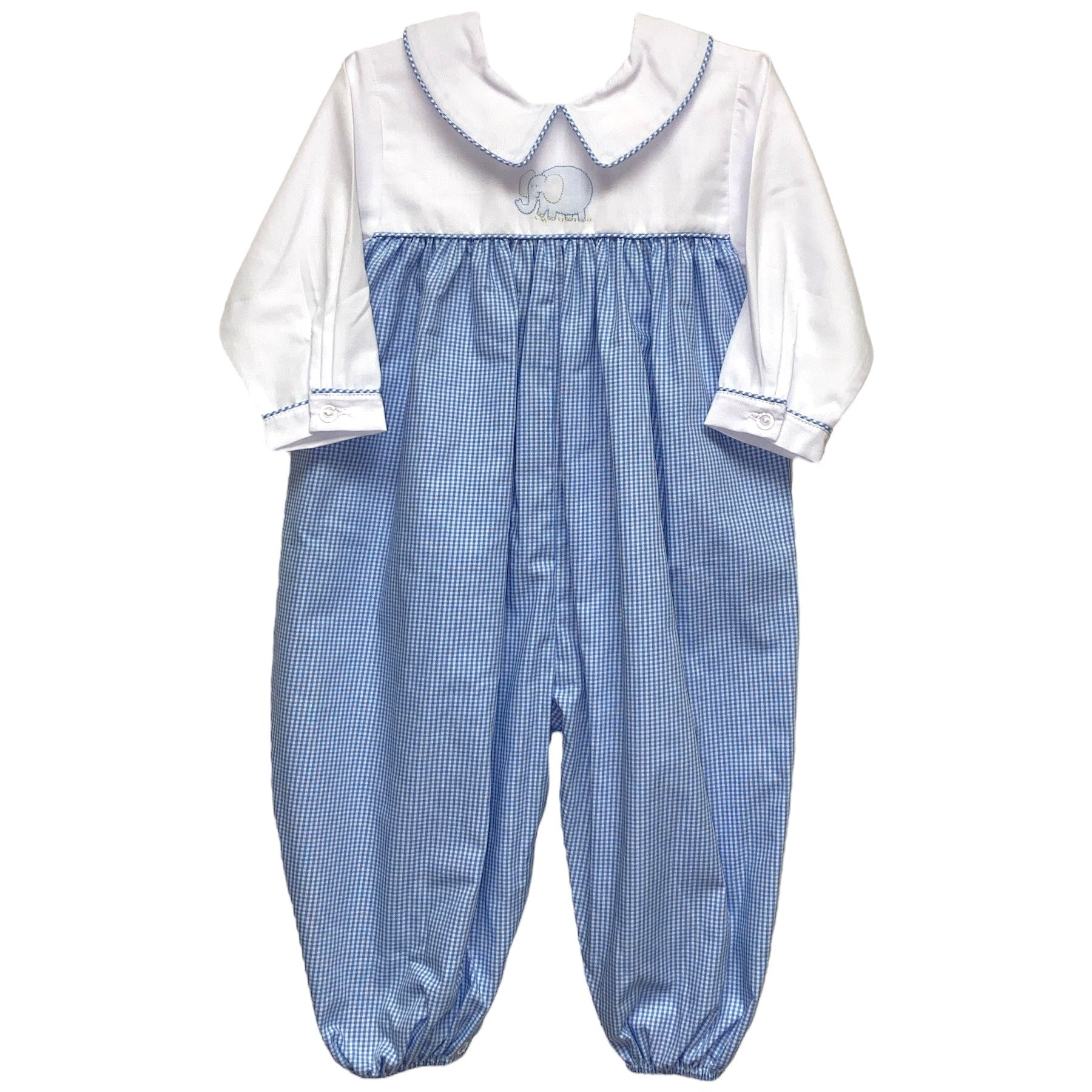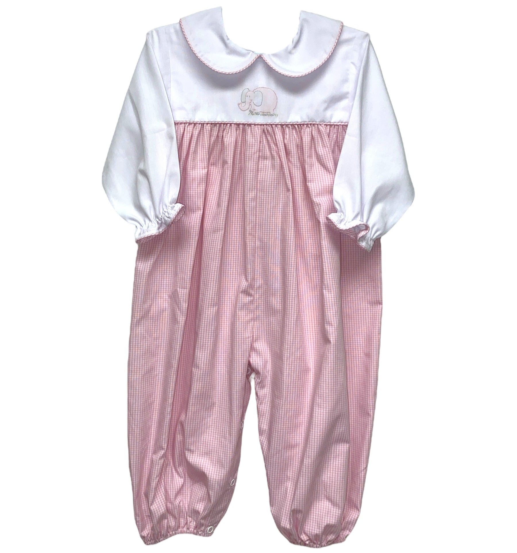 L/S White/Gingham Longall W/Elephant Shadow Emb