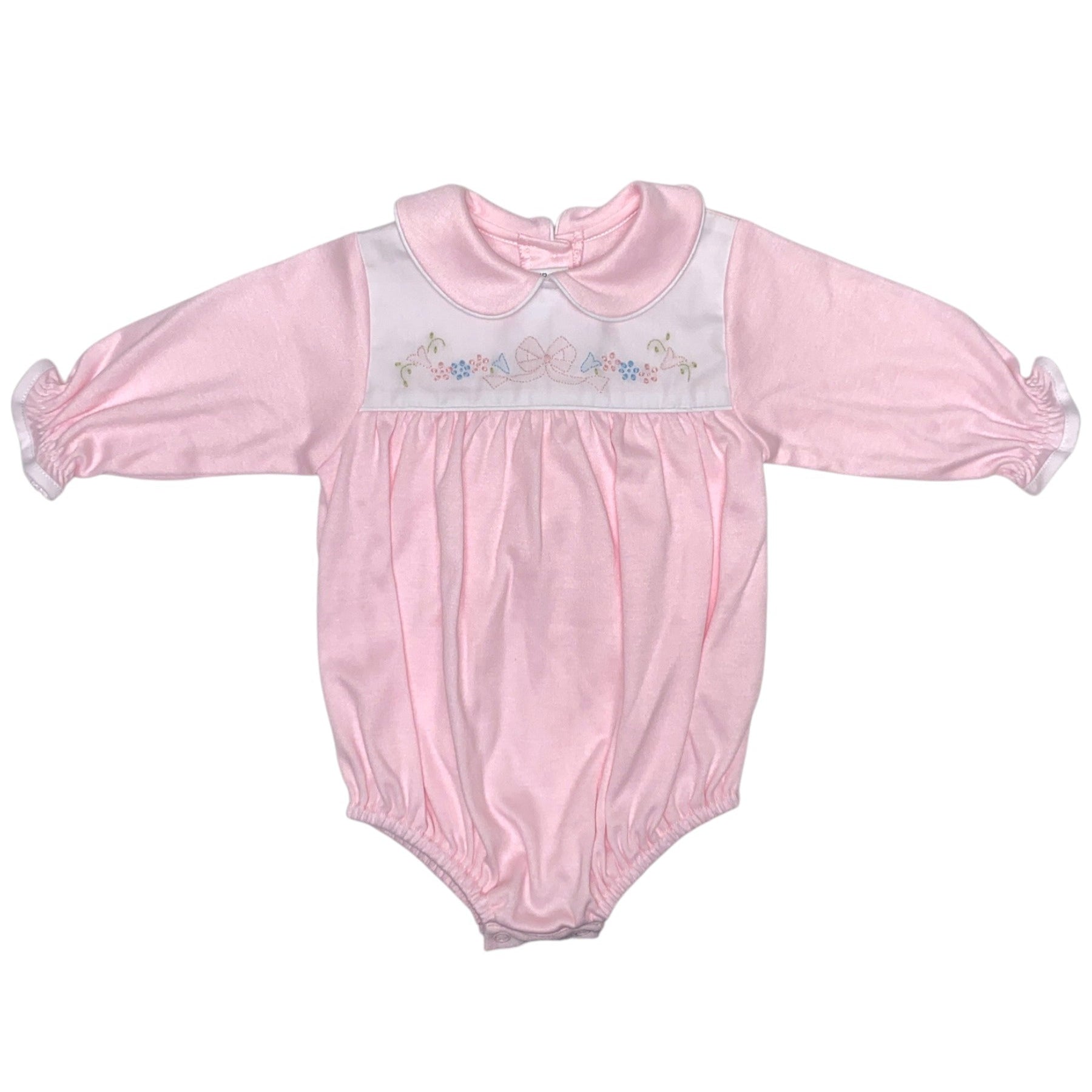 Pink/White Long Sleeve Double Knit Bubble W/Shadow Emb Bow & Bullion Flowers
