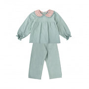 Floral Peter Pan Collar Sage Green 2pc Tracksuit