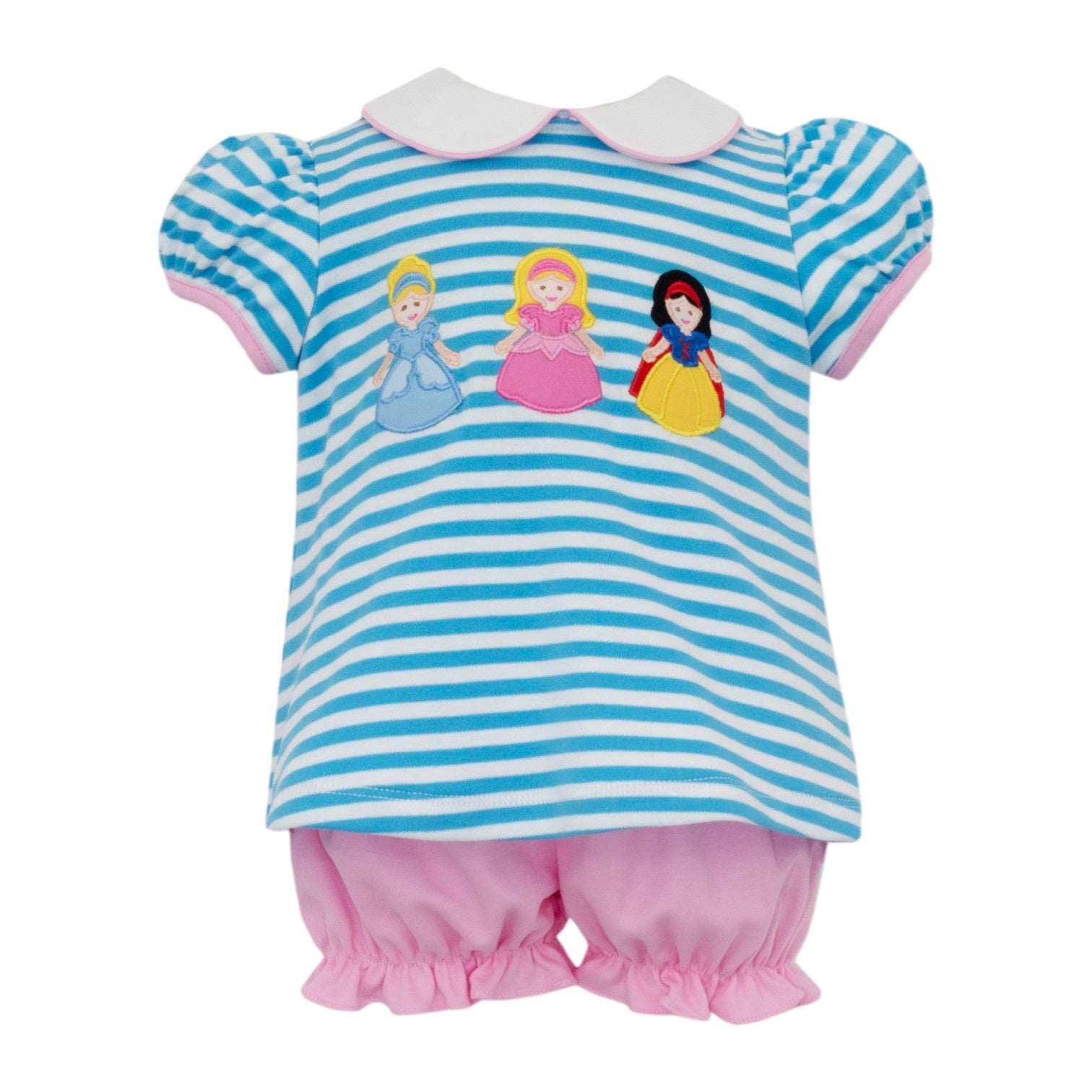 Princesses Turq Knit Stripe Girls Bloomer Set S/S