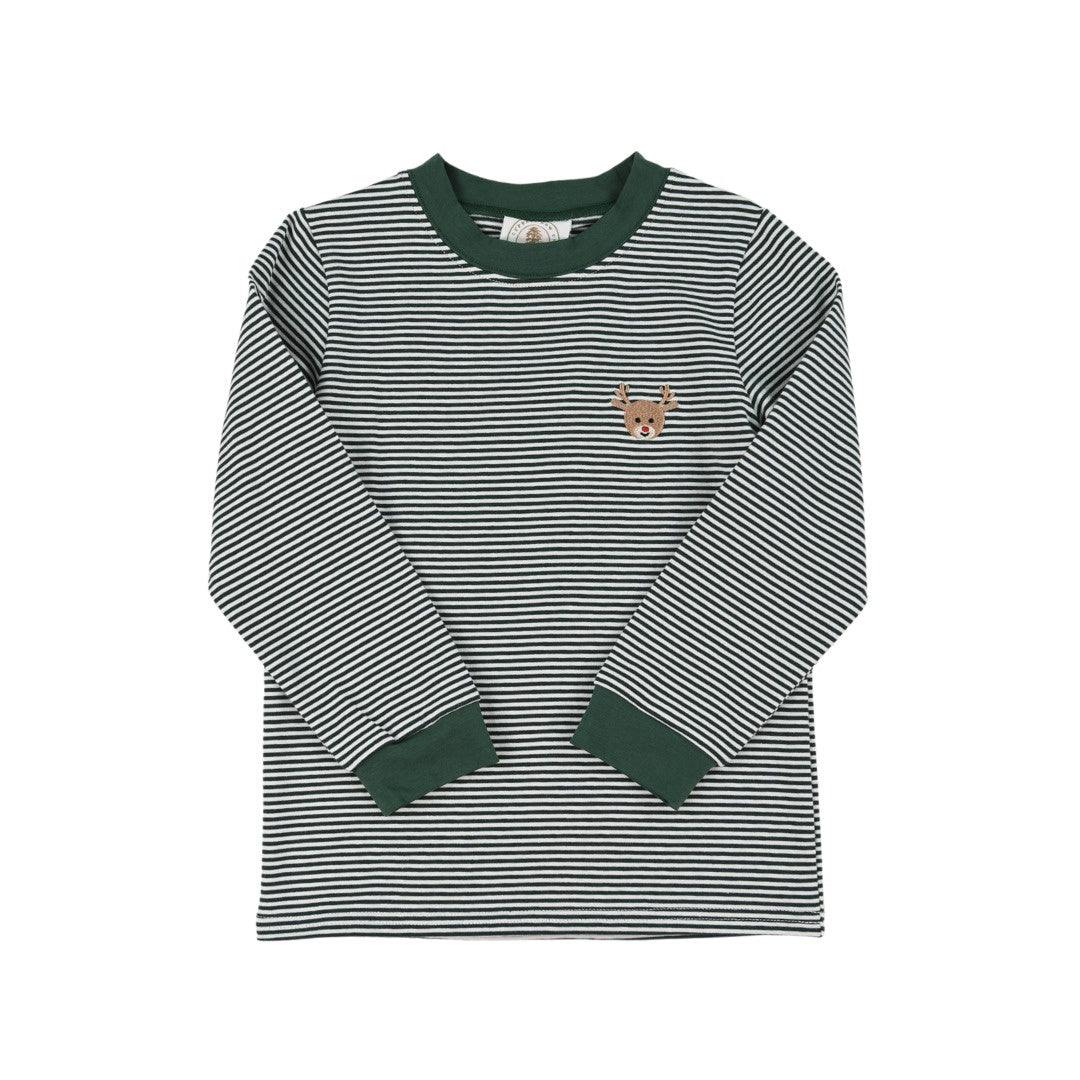 Green stripe Reindeer Crew Cuff Long Sleeve Tee