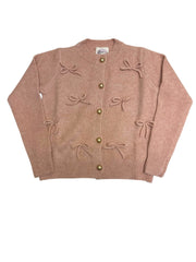 Crew Neck LS Cardigan W/3D Bows & Gold Buttons Salmon