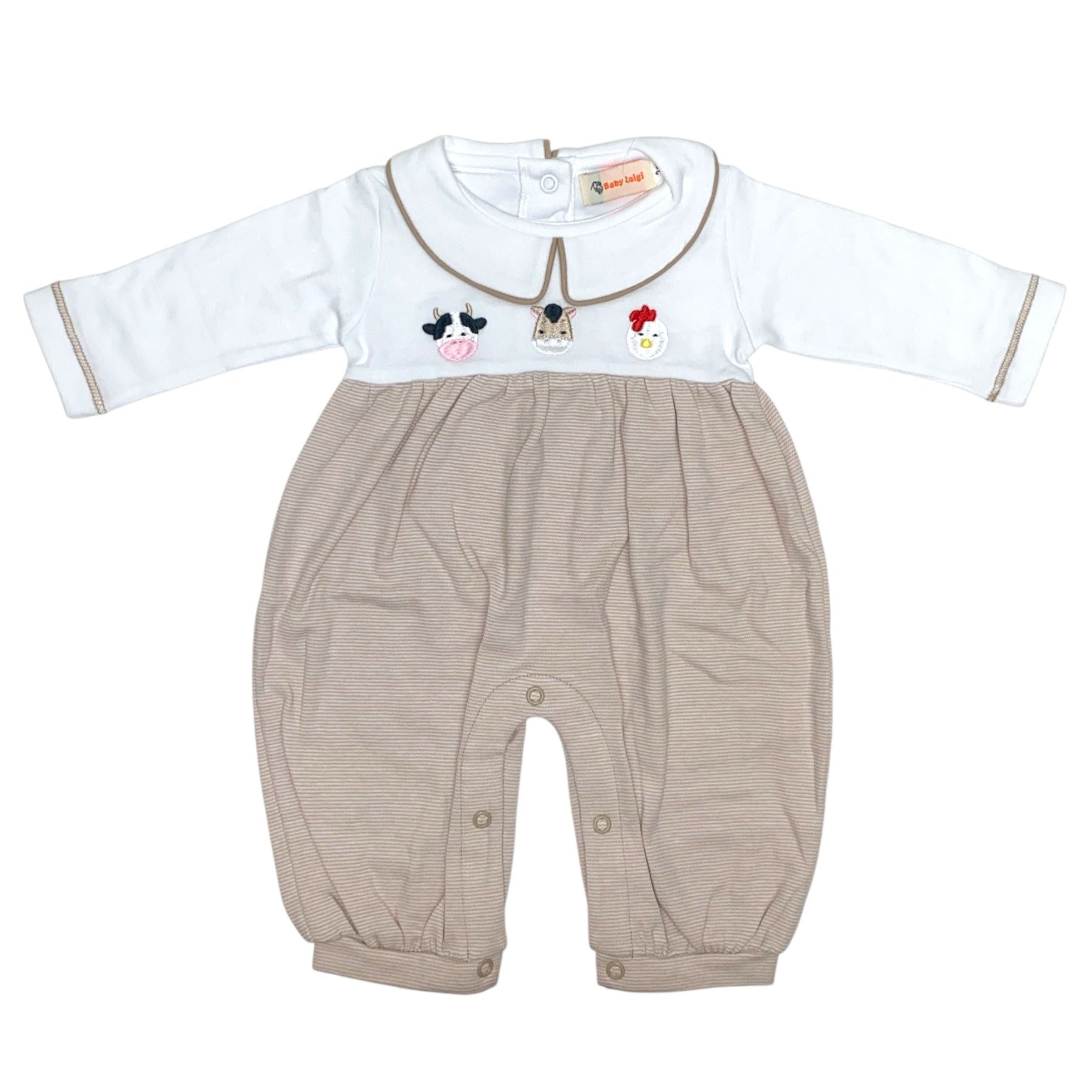 Luigi Farm L/S Stripe Romper Sand/White 5208