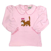 L/S Pink Blouse W/Ruffle Cuff & Peter Pan Collar W/Cat W/Heart Headband Applique