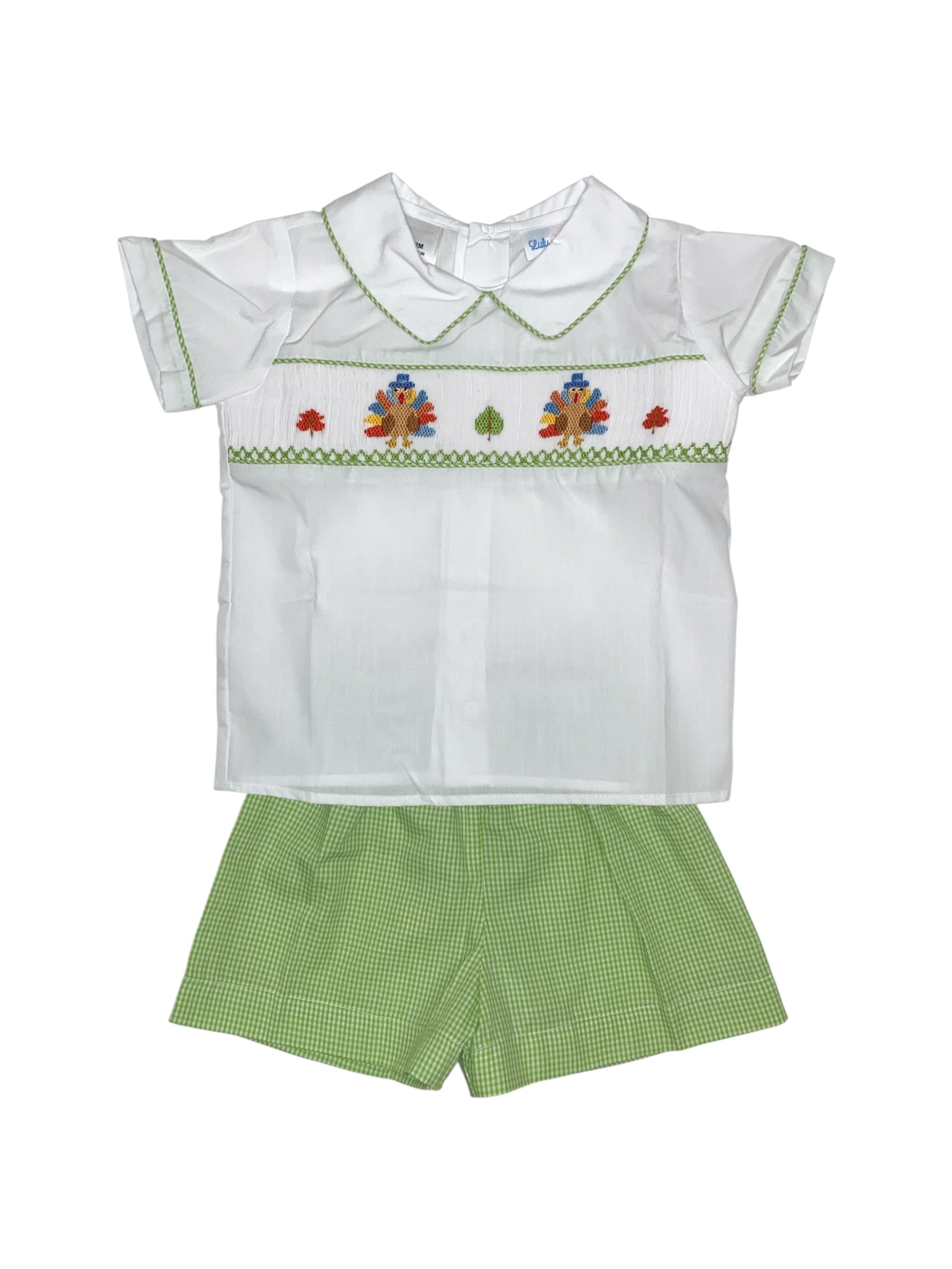 Turkey Smocked Short Set Peter Pan Collar