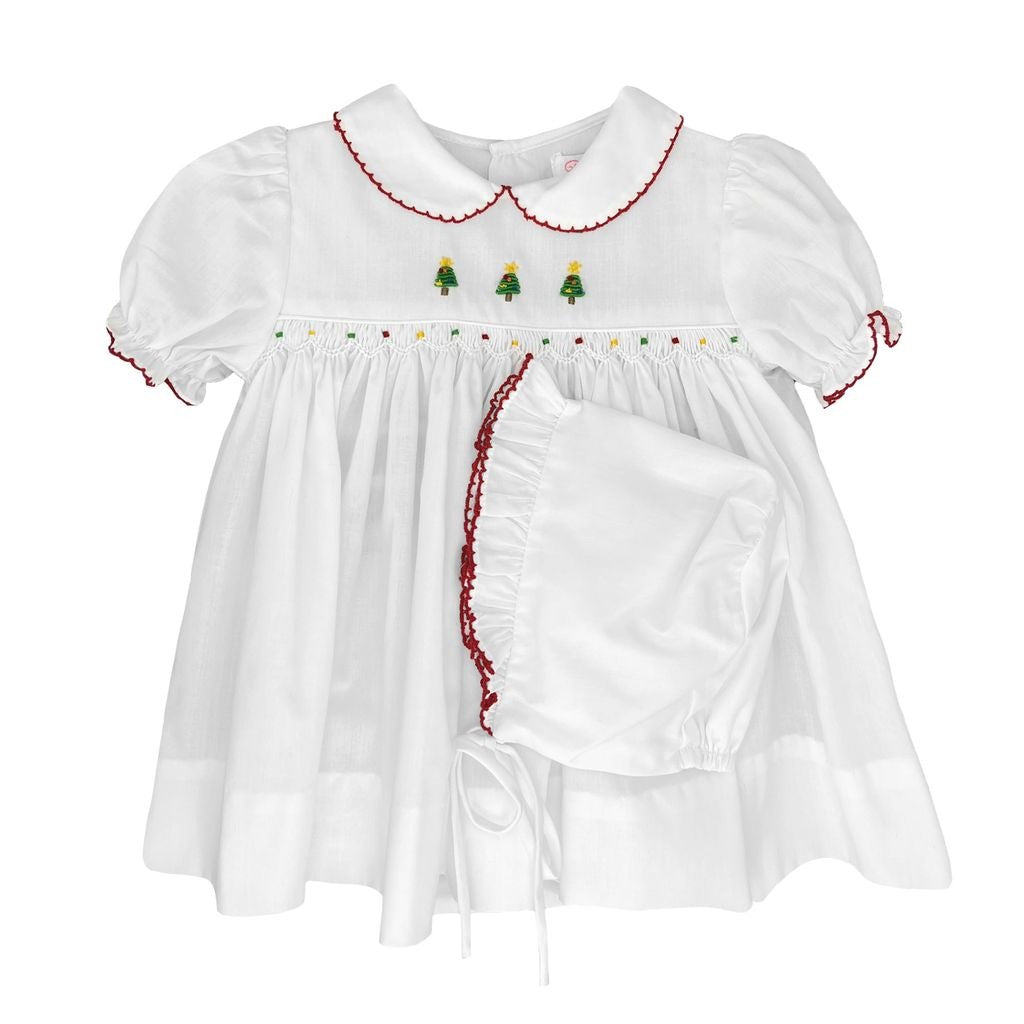 Petit Ami Hand Embroidered Christmas Tree Dress & Hat NB 5142 5208