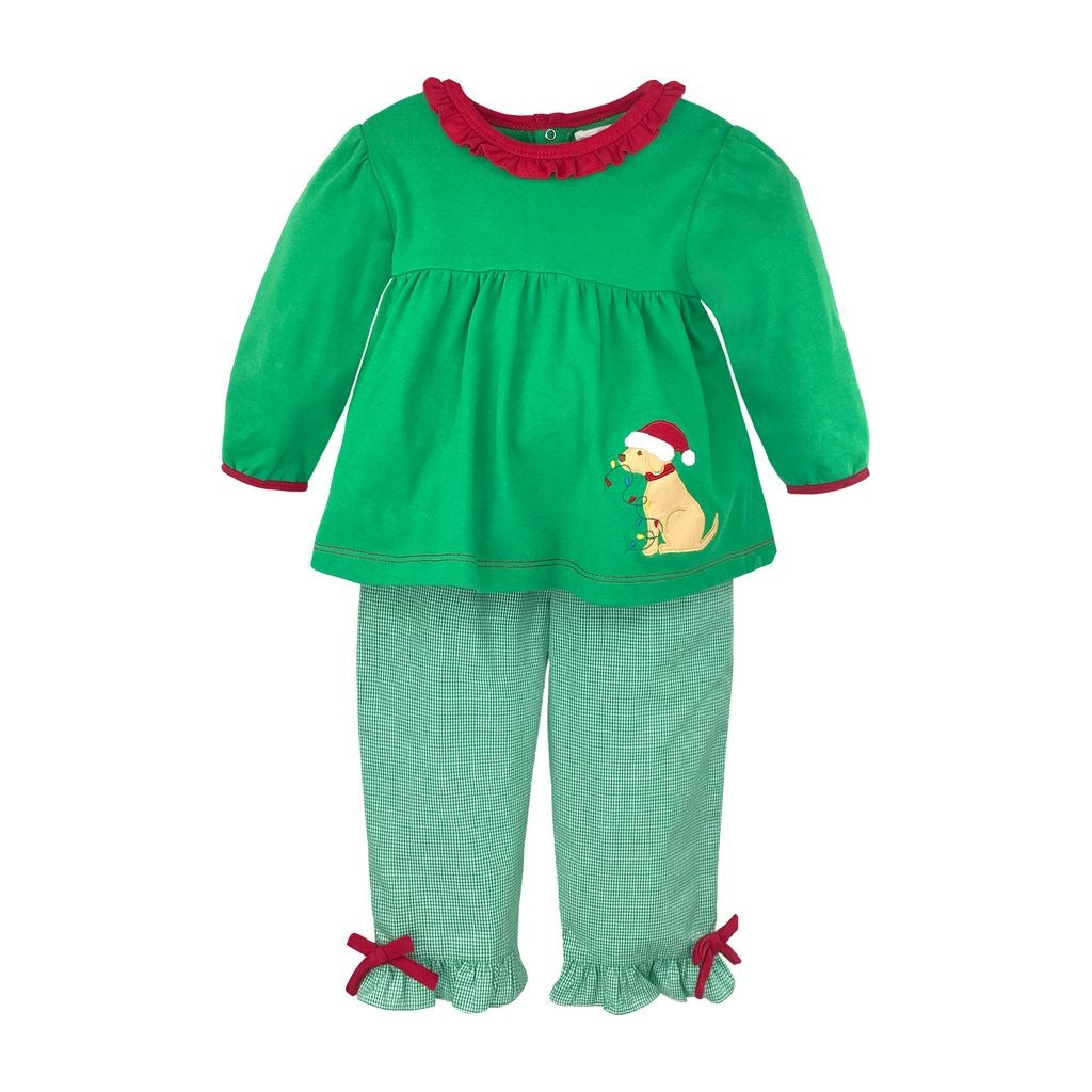Petit Ami Top/Pant Set W/Christmas Dog Appl 3376/4376 5208