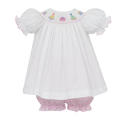 Birthday Girl's Pink Gingham Bishop Bloomer Set W/White Top S/S