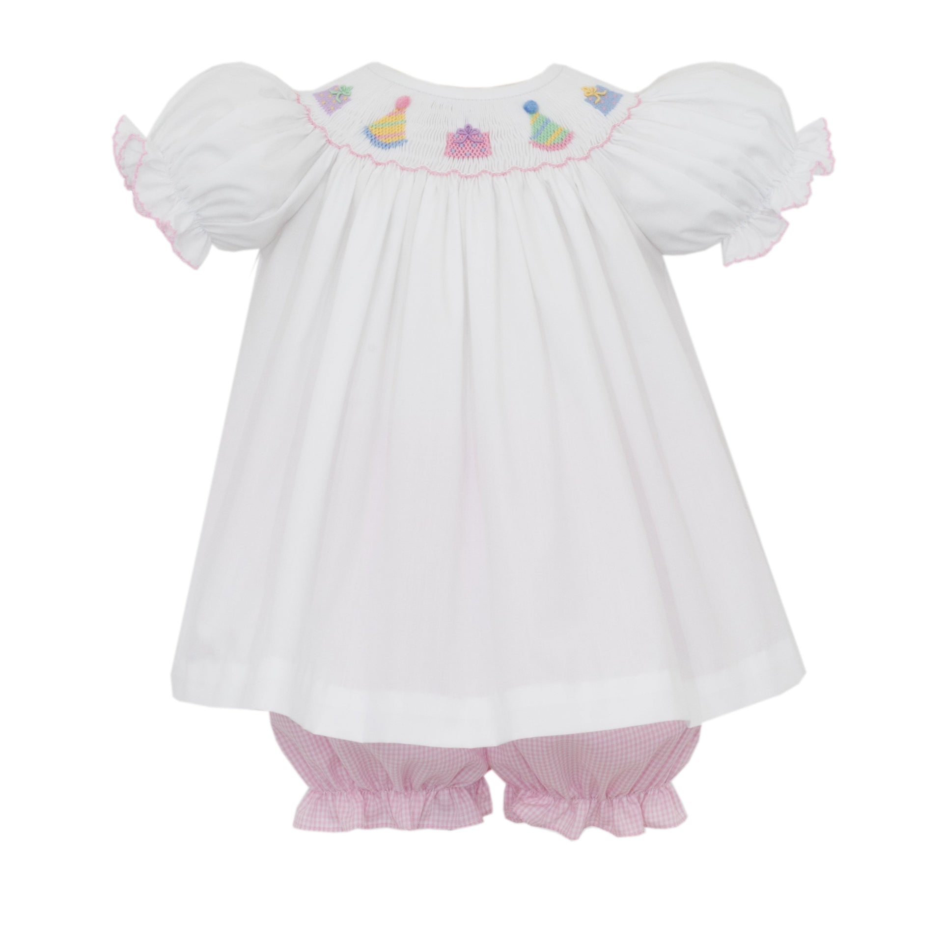 Petit Bebe Birthday Girl's Pink Gingham Bishop Bloomer Set W/White Top S/S 125C-MF25 5208