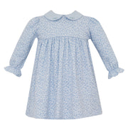 Petit Bebe Blue Liberty Print Girl's Dress W/Embroidery Collar L/S 416DL-MF25 5208