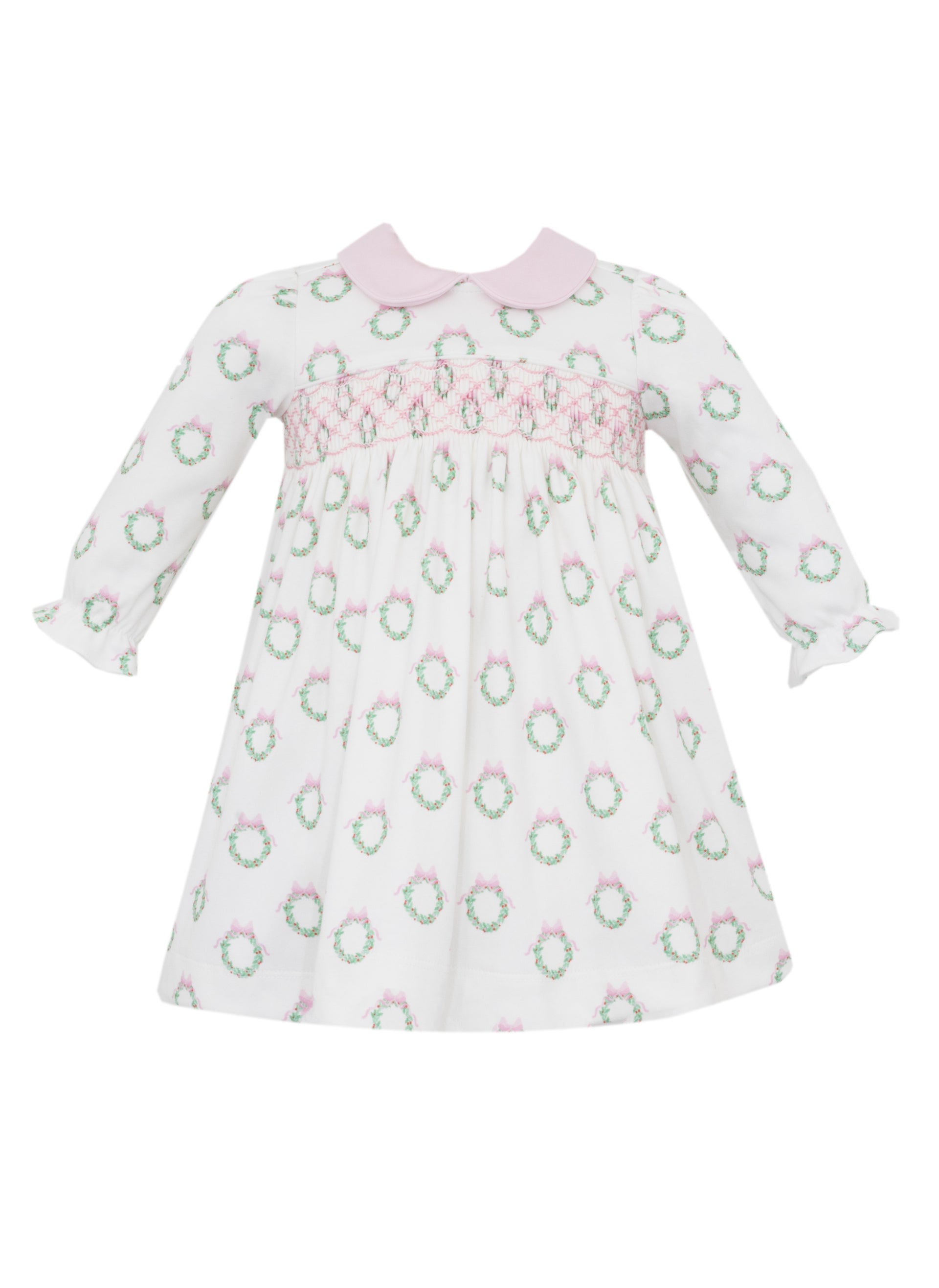 Petit Bebe Holiday Pink Wreath Pink Print Knit Dress 410DL-MH25 5210