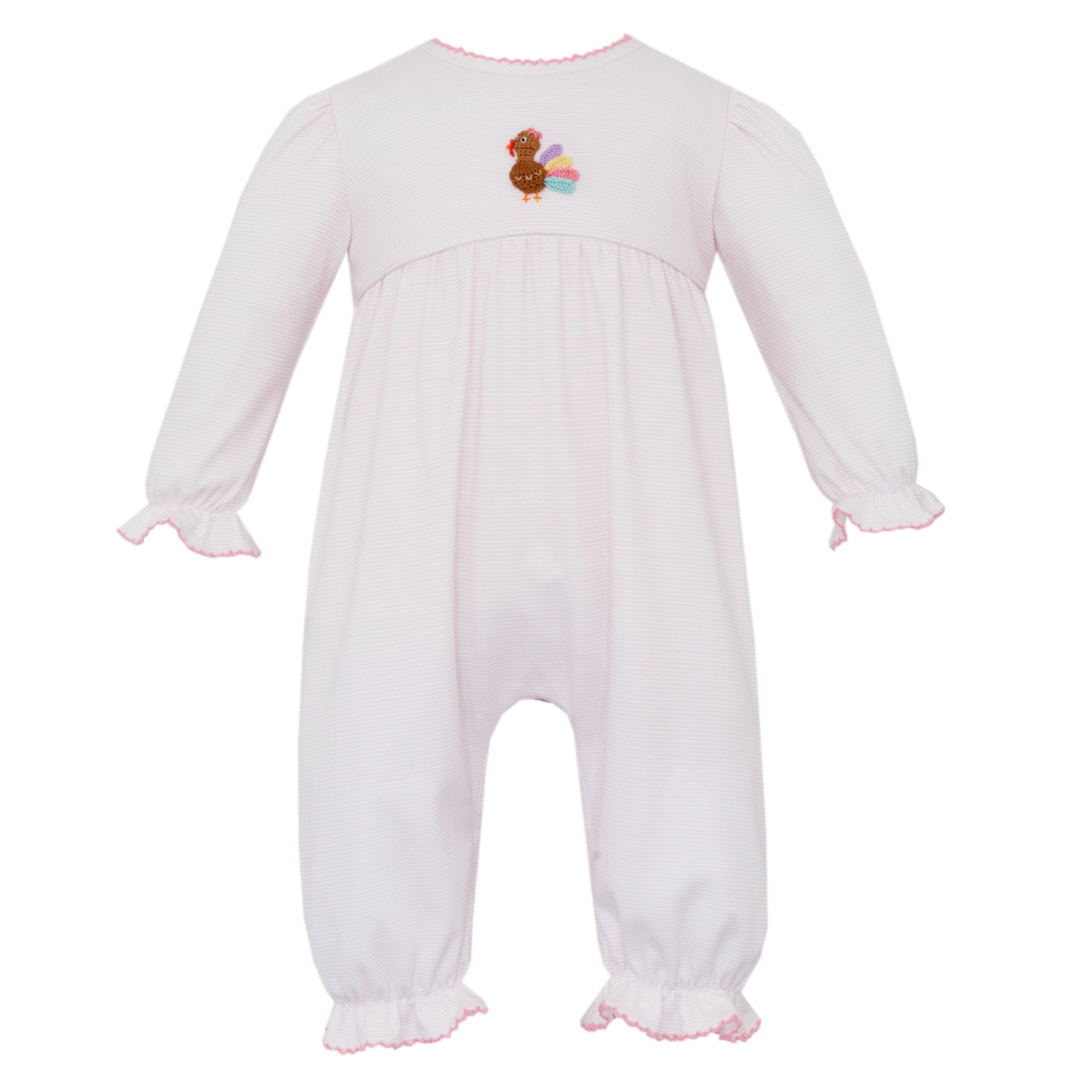 Petit Bebe Turkeys Girl's Pink stripe Knit girl's Long Romper L/S 470F-MF25 5209