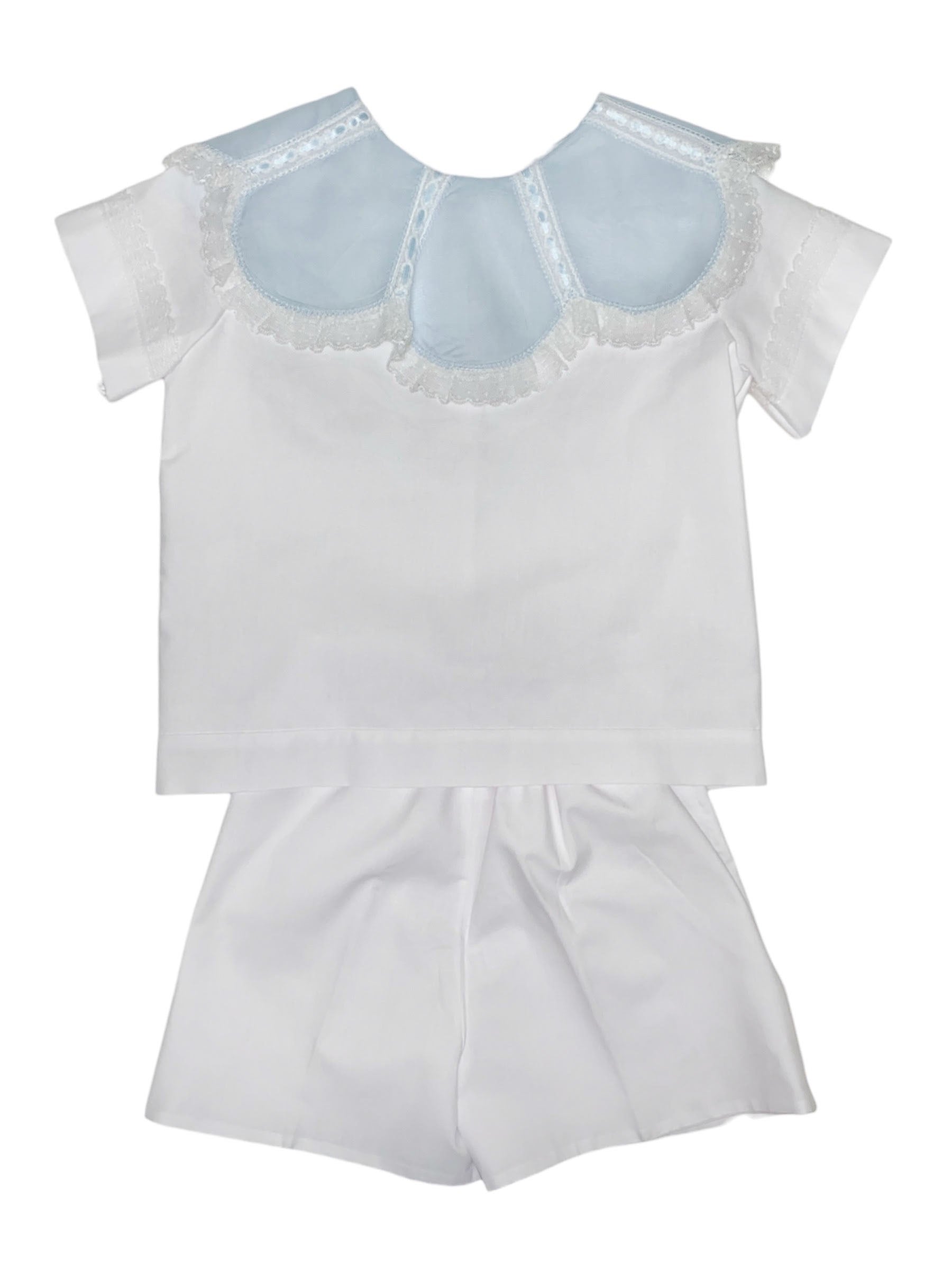 Treasured Memories White W/Light Blue Scalloped Collar W/White Lace Walking Short Set S26933 5212