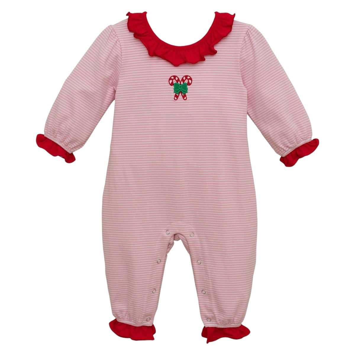Candy CAne Embroidery Ruffle Romper