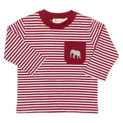 Burgundy/White Stripe LS T-Shirt W/Elephant Embroidery