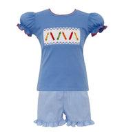 Crayon's Smocked Shirt W/Periwinkle Gingham Shorts
