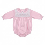 Pink/White Long Sleeve Double Knit Bubble W/Shadow Emb Bow & Bullion Flowers