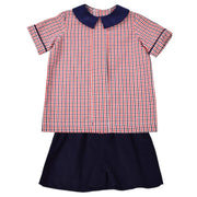 Pleat Front Shirt Red and Navy W/Navy Shorts