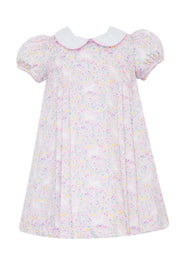 Bunny Float dress W/White Collar Bunny print
