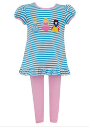 Princesses Turq Knit Stripe Girls Tunic Set