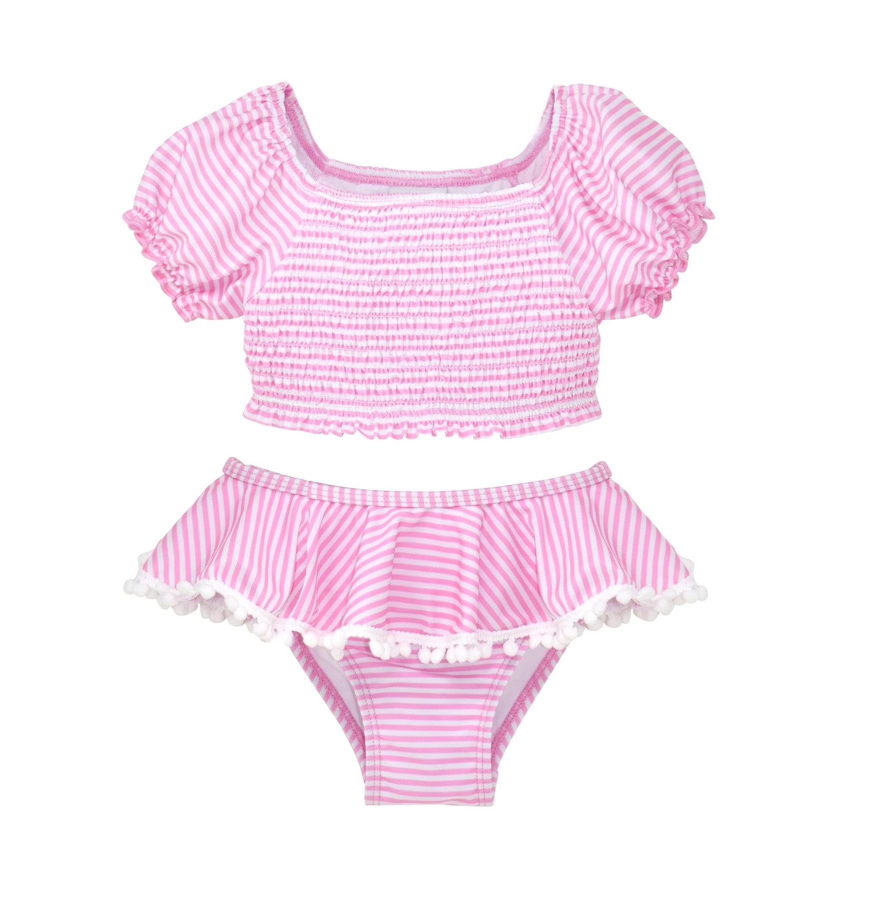 Gemma Two piece Smocked Pom-Pom Swimsuit Sweet Pink Stripe