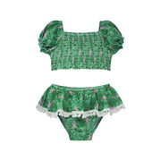 Tropical Fronds Gemma Two Piece Smocked Pom Pom Swimsuit