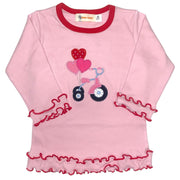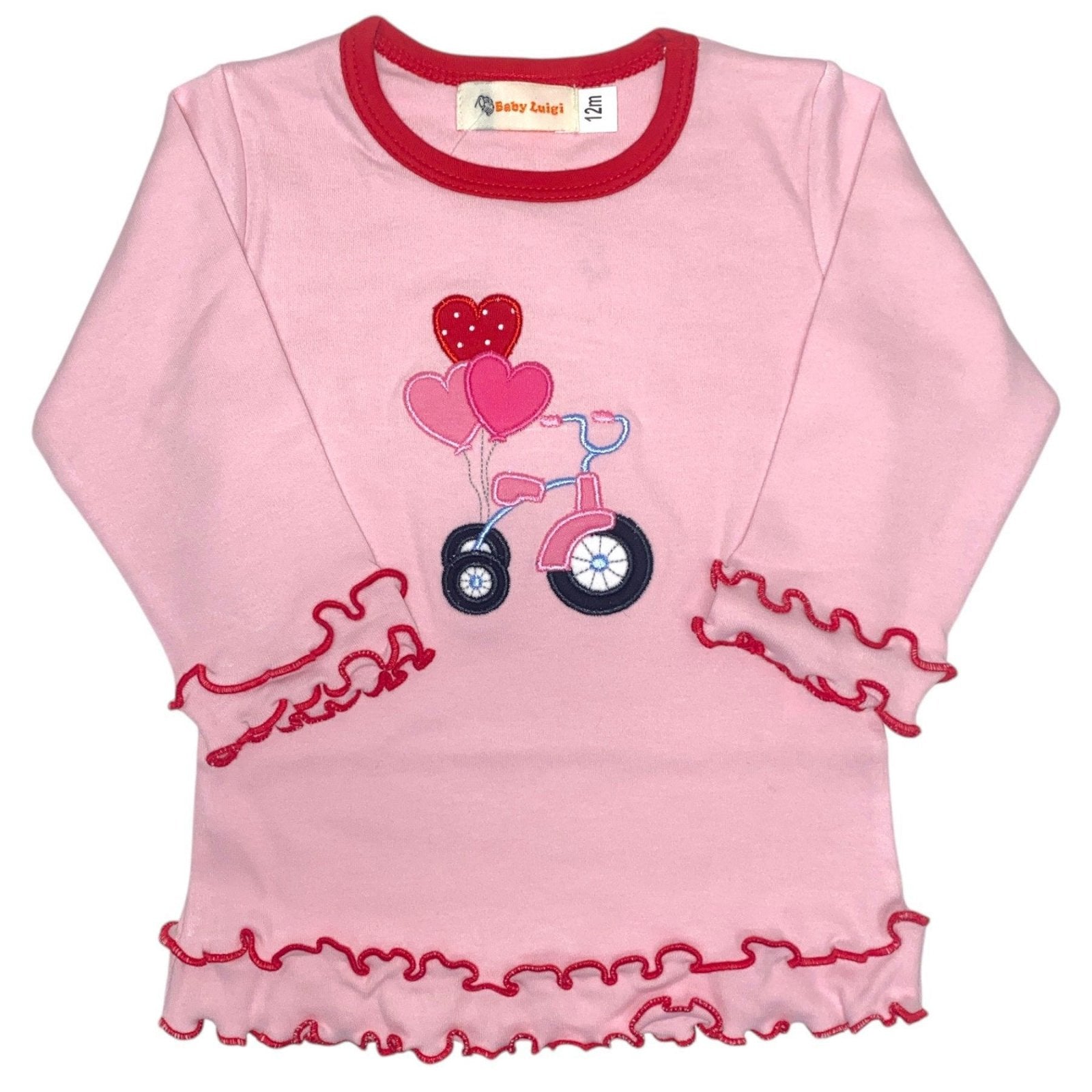 Double Lettuce Edge L/S Shirt W/Valentine Tricycle App. Lt. Pink/Red