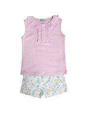 Girl's Pink Top & Easter Floral Skort W/Bunnies