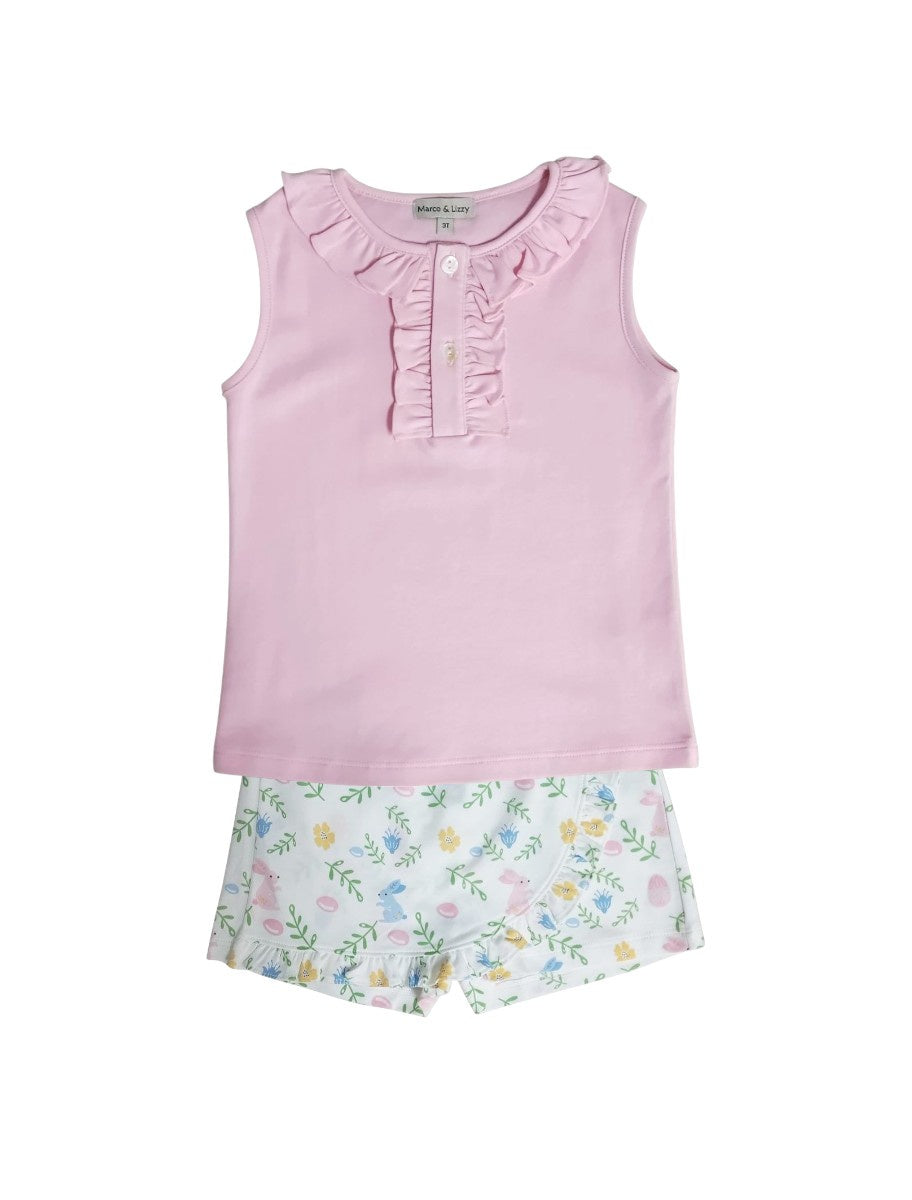Marco & Lizzy Girl's Pink Top & Easter Floral Skort W/Bunnies M-24-175P/!88 5202