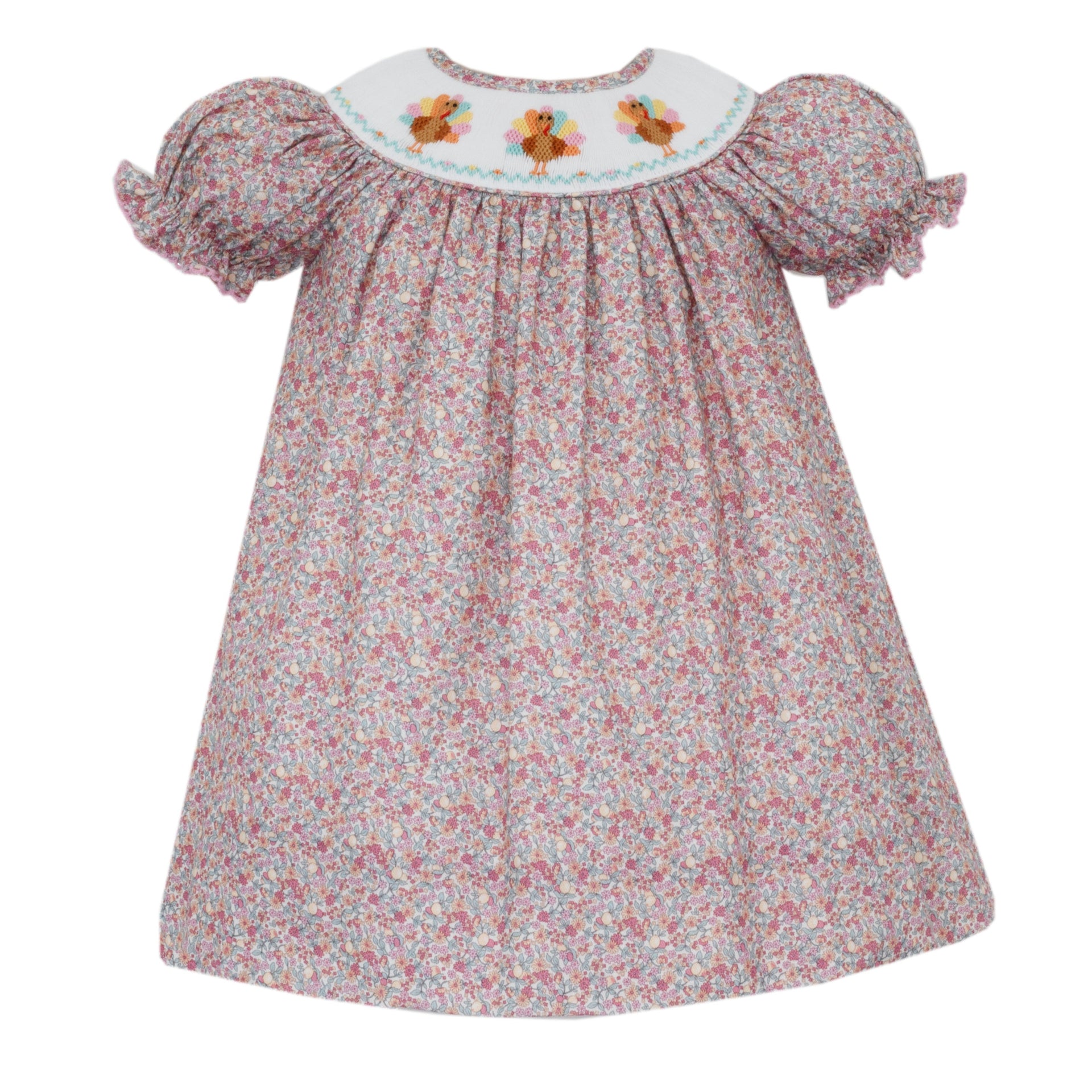 Turkey Girl's Pink Floral Bishop W/Insert S/S