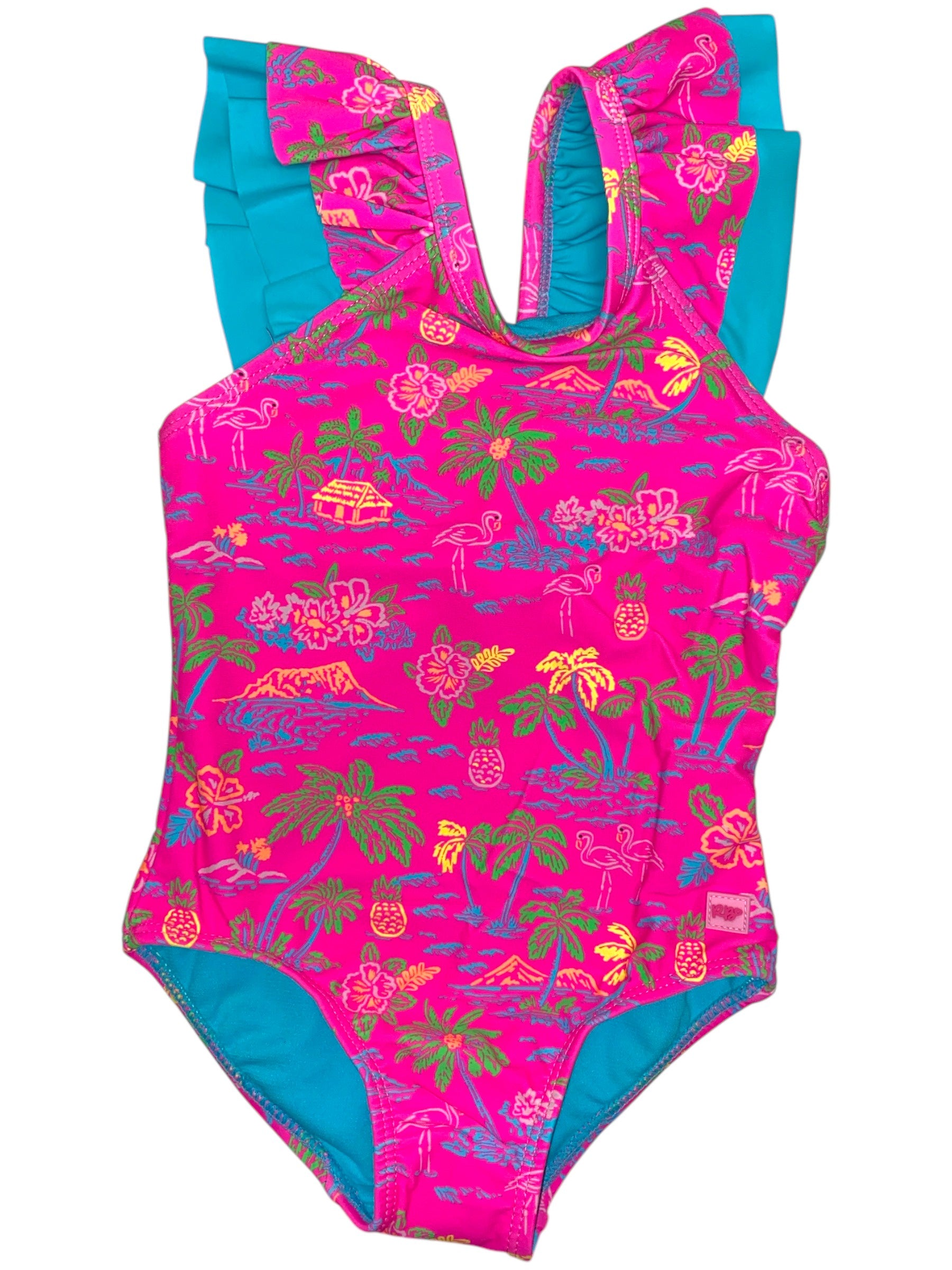 RuffleButts Ruffle V-Back One piece Neon Island Time 1SW0359 5112