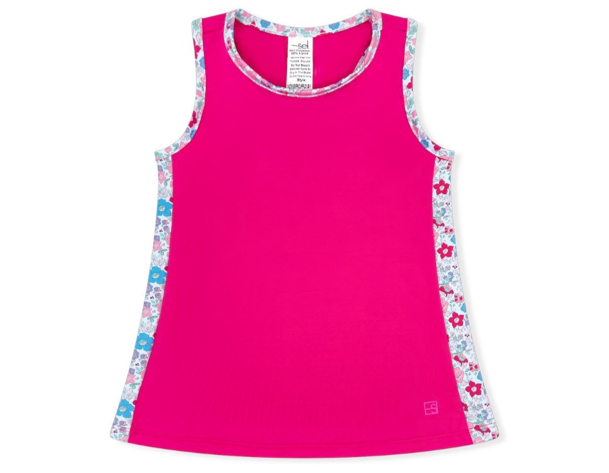 Set Athleisure Power Pink Athleisure W/Bloomberry Floral Custom Print Sides and Welting Nicole Tank 5112