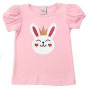 Cute Bunny with Crown appliqué on a puff sleeve t shirt