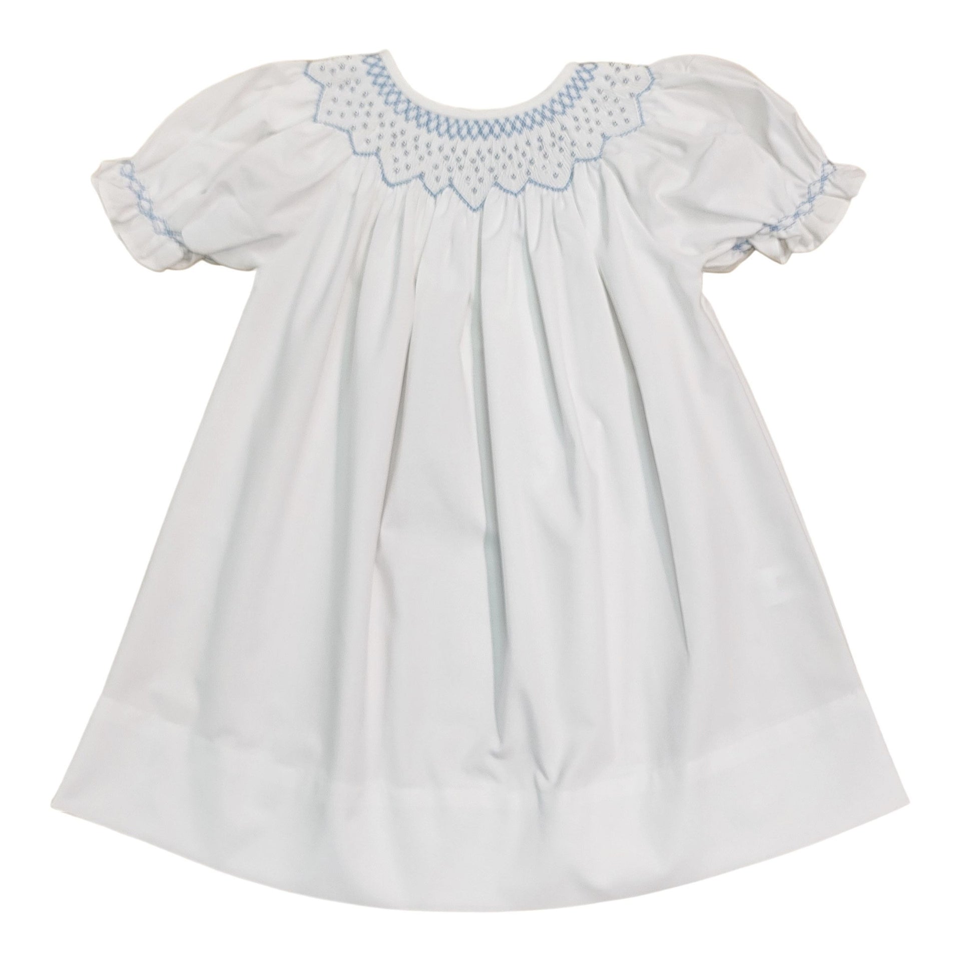 Sweet Dreams Cathy White Smocked Dress W/Blue pearl MT91B 5202