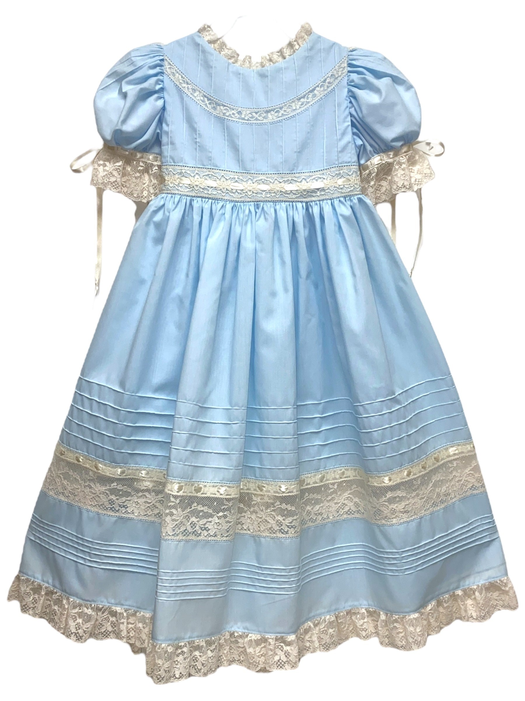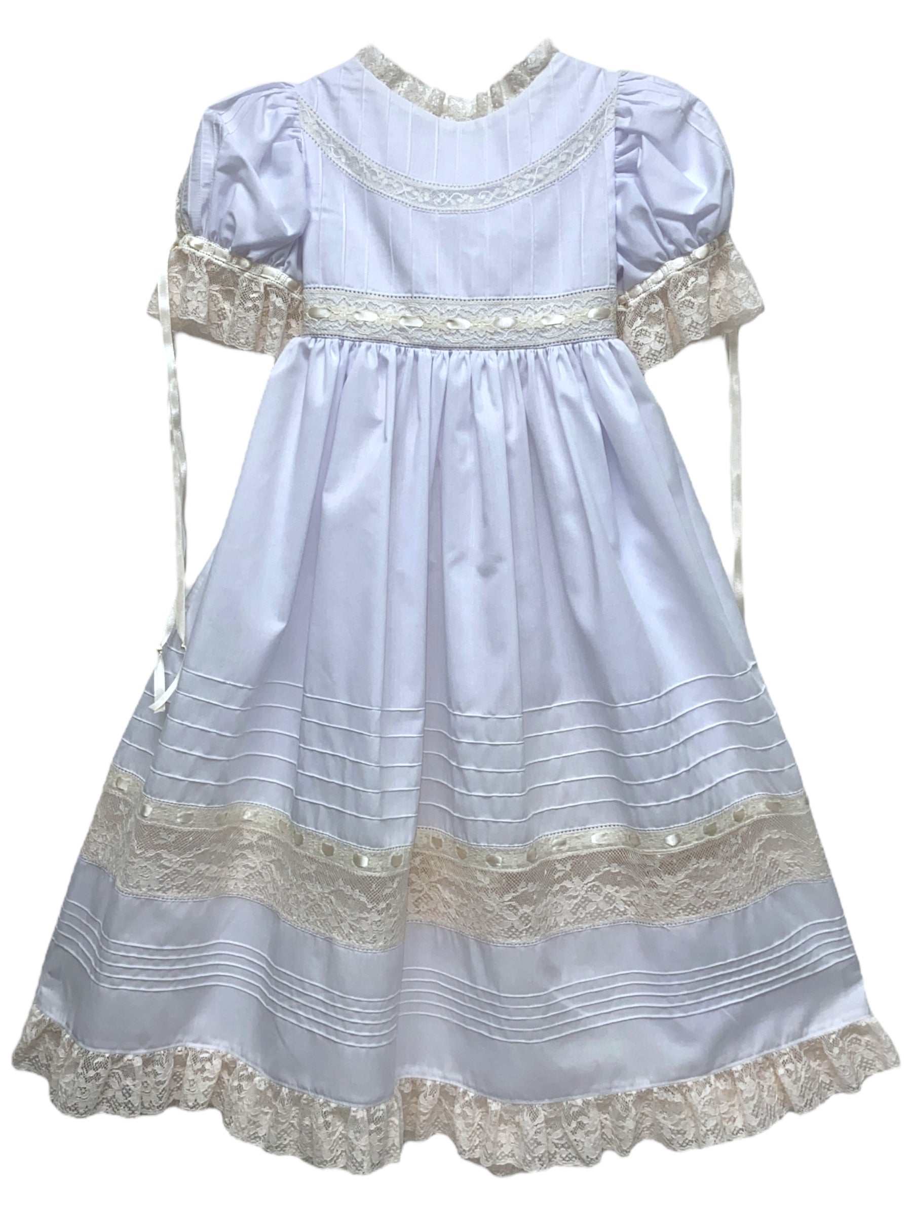 Treasured Memories Dress W/Ecru Lace & Ribbon, Lace Insertion W/Lace Belt at Waist W/Ribbon Tie Tucks W/Lace Hem 5607 5112