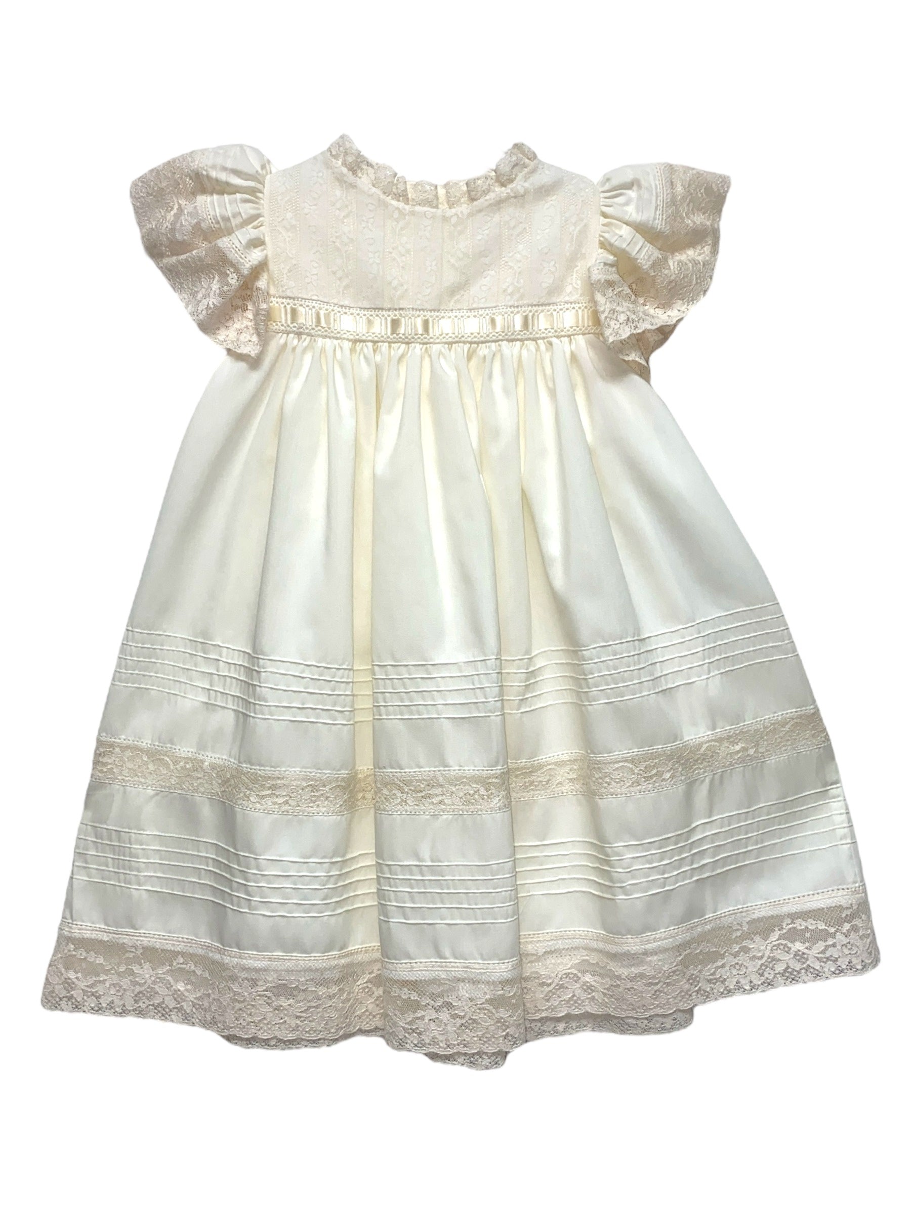 Ecru Dress W/Ecru Lace & Ecru Ribbon - Lace Insertion