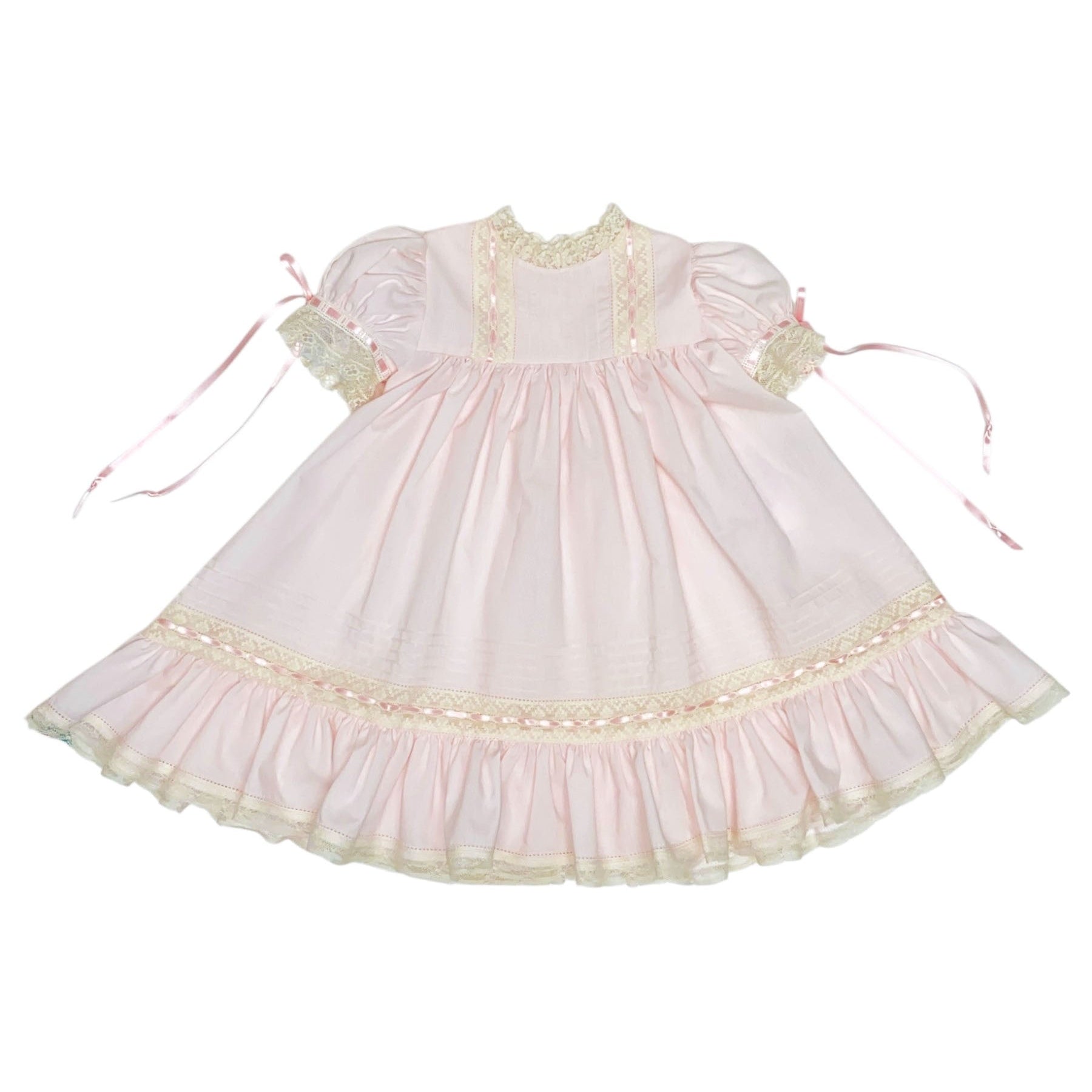 Treasured Memories Pink Dress W/Ecru Lace W/Pink Ribbon S2691