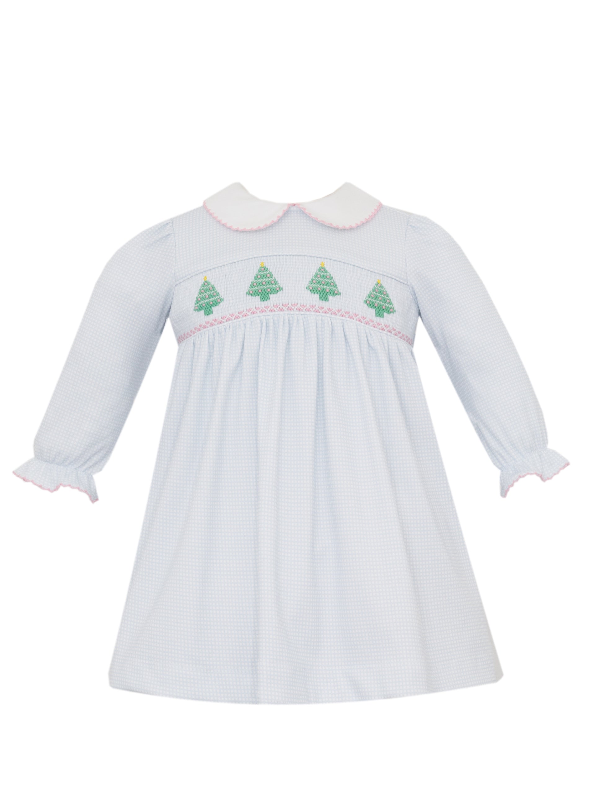Petit Bebe X'mas Tree Girl's Blue Check Knit Dress L/S 446DL-MH25 5210