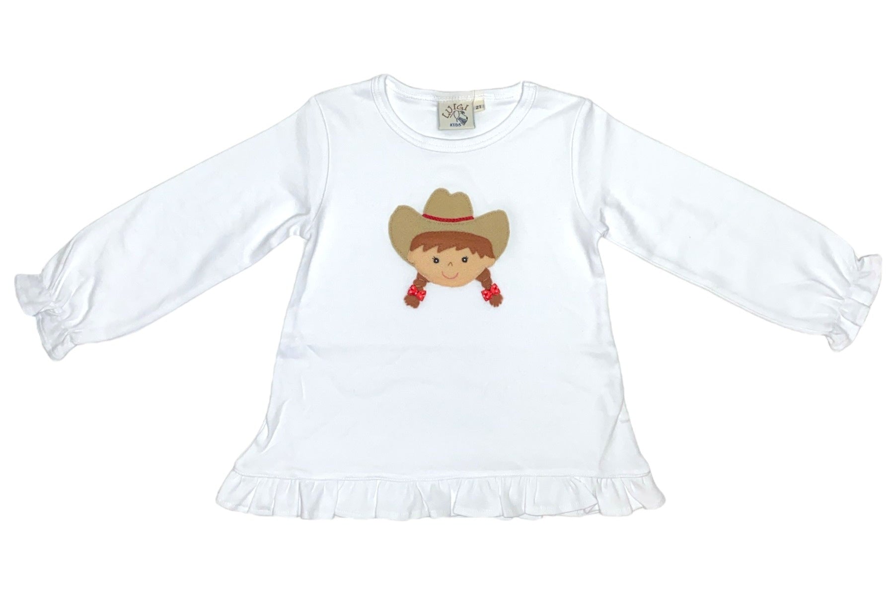 Luigi Cowgirl Appl White Ruffle Swing Top 5208