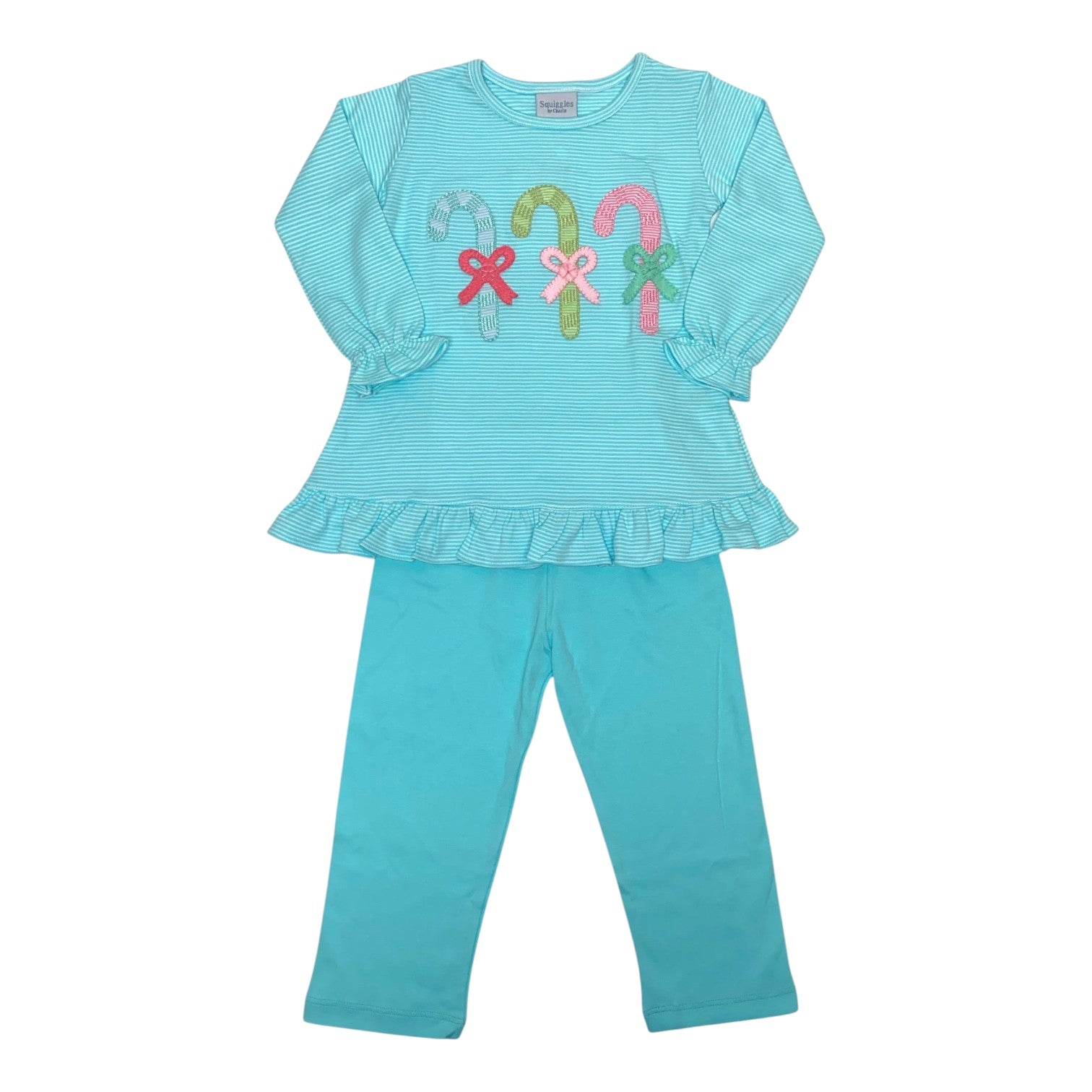 Squiggles Pastel Candy Canes Ruffled Trim Top & Straight Leg Pant 337/574 5211