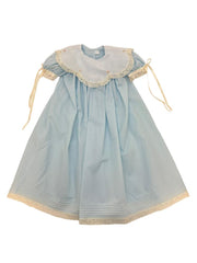 Treasured Memories Blue Scalloped Collar Dress w/ Blue Rosettes & Ecru Lace/Ribbon 1902 BL/EC