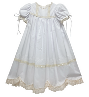 Treasured Memories White Dress W/Ecru Lace & Ribbon Scalloped Lace Hem S501 5101